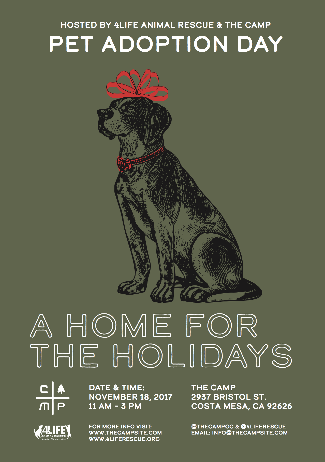 Starting to think about holiday gift ideas? We've got the perfect one for you! The CAMP is partnering up with 4Life Animal Rescue on November 18th to find "A Home For The Holidays" for these animals in need.